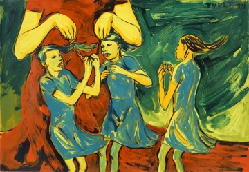 Třešně jsou synonymem zrání a jara. Dívky na tempeře jedí třešně, které jim dává proporčně předimenzovaná postava připomínající matku. Je to matka chránící a milující nebo matka uzurpující a trestající? To je rozpora a nezodpovězená otázka. Stejně tak, jako v textech , které Lubomír píše pro WWW Neurobeat, nechává autor toto rozhodnutí na vás...