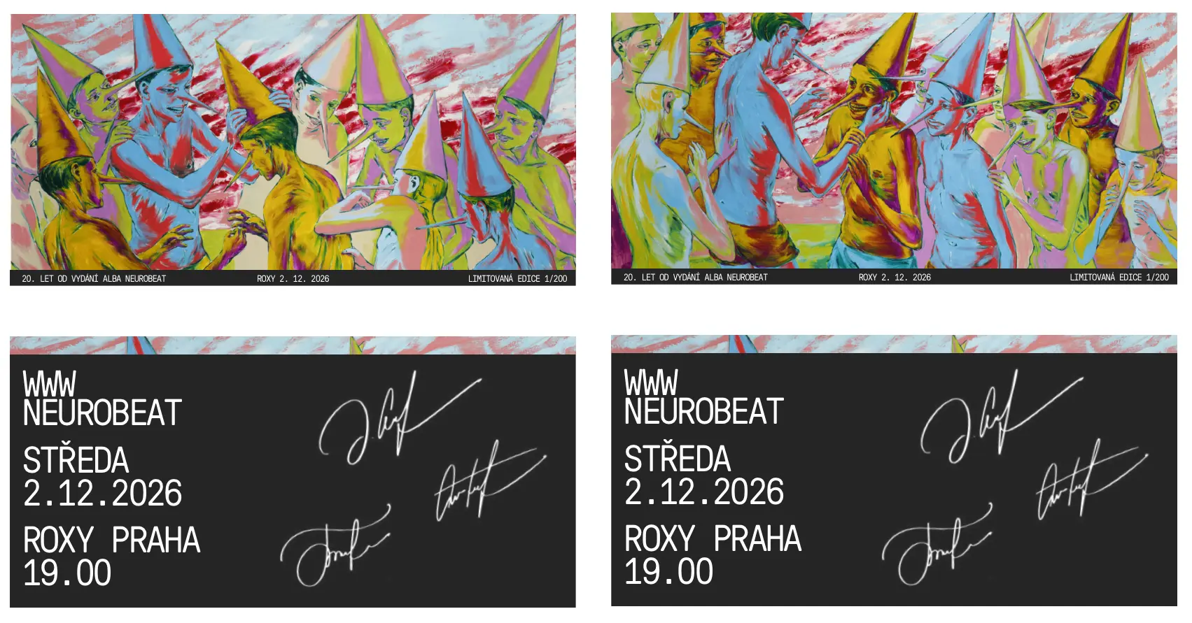 V prosinci 2026 uplyne 20 let od vydání debutové desky NEUROBEAT. Toto výročí jsme se rozhodli oslavit velkým koncertem v ROXY, a to ve středu 2.12. 2026.